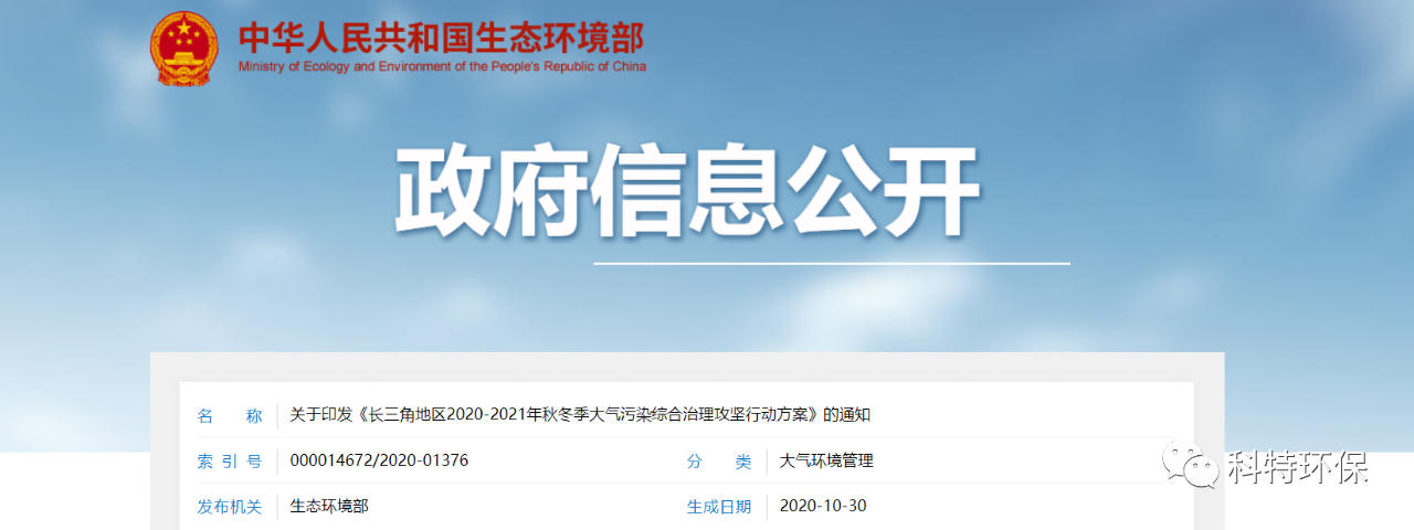 生態(tài)環(huán)境部、國家發(fā)展和改革委員會、工業(yè)和信息化部等10部門與上海、江蘇、浙江、安徽等4?。ㄊ校┤嗣裾摵嫌“l(fā)《長三角地區(qū)2020-2021年秋冬季大氣污染綜合治理攻堅行動方案》(以下簡稱《行動方案》)